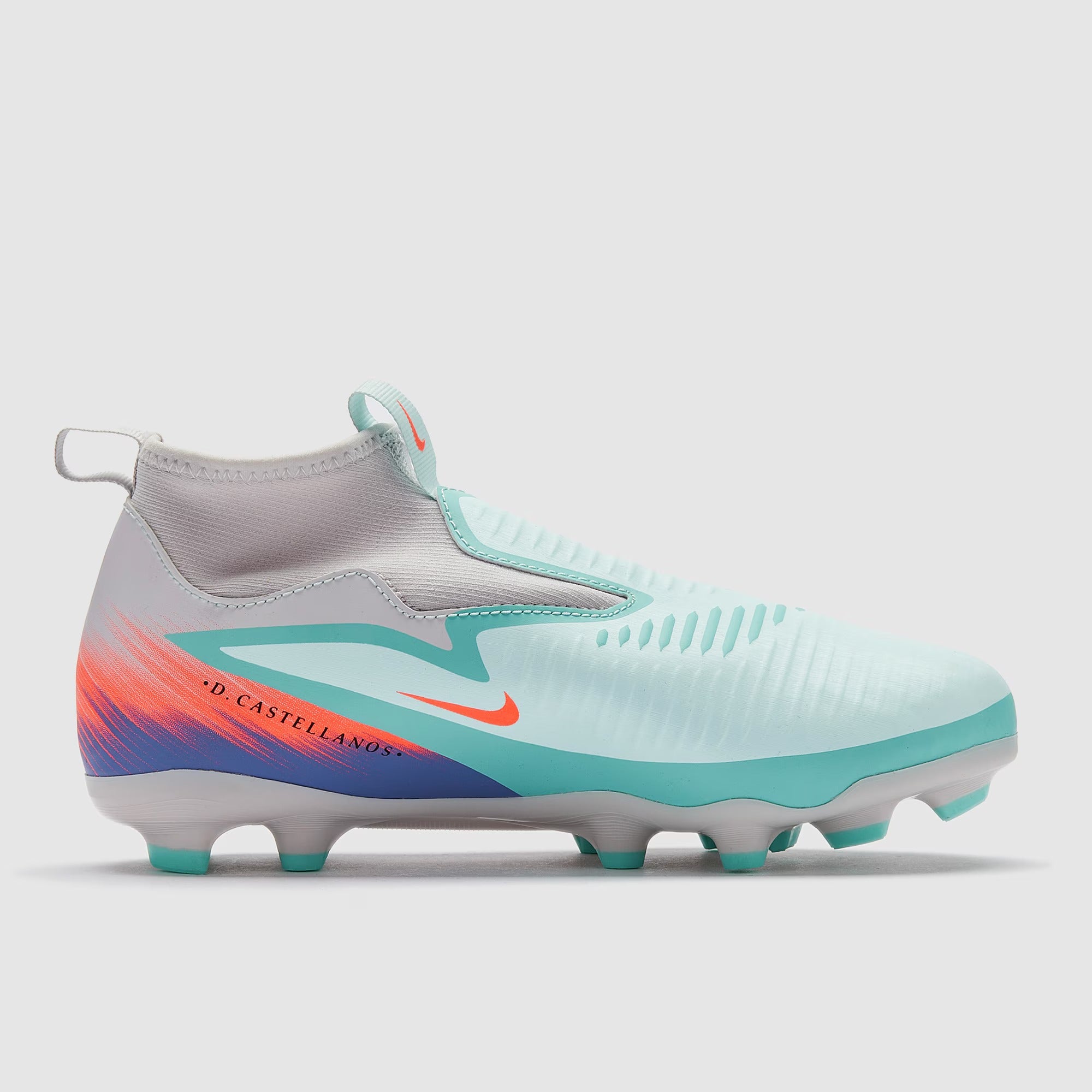 Strike fear into opponents with Nike Kids Phantom 6 Academy High FG/MG football boots in Limelight/Hyper Crimson/Black.