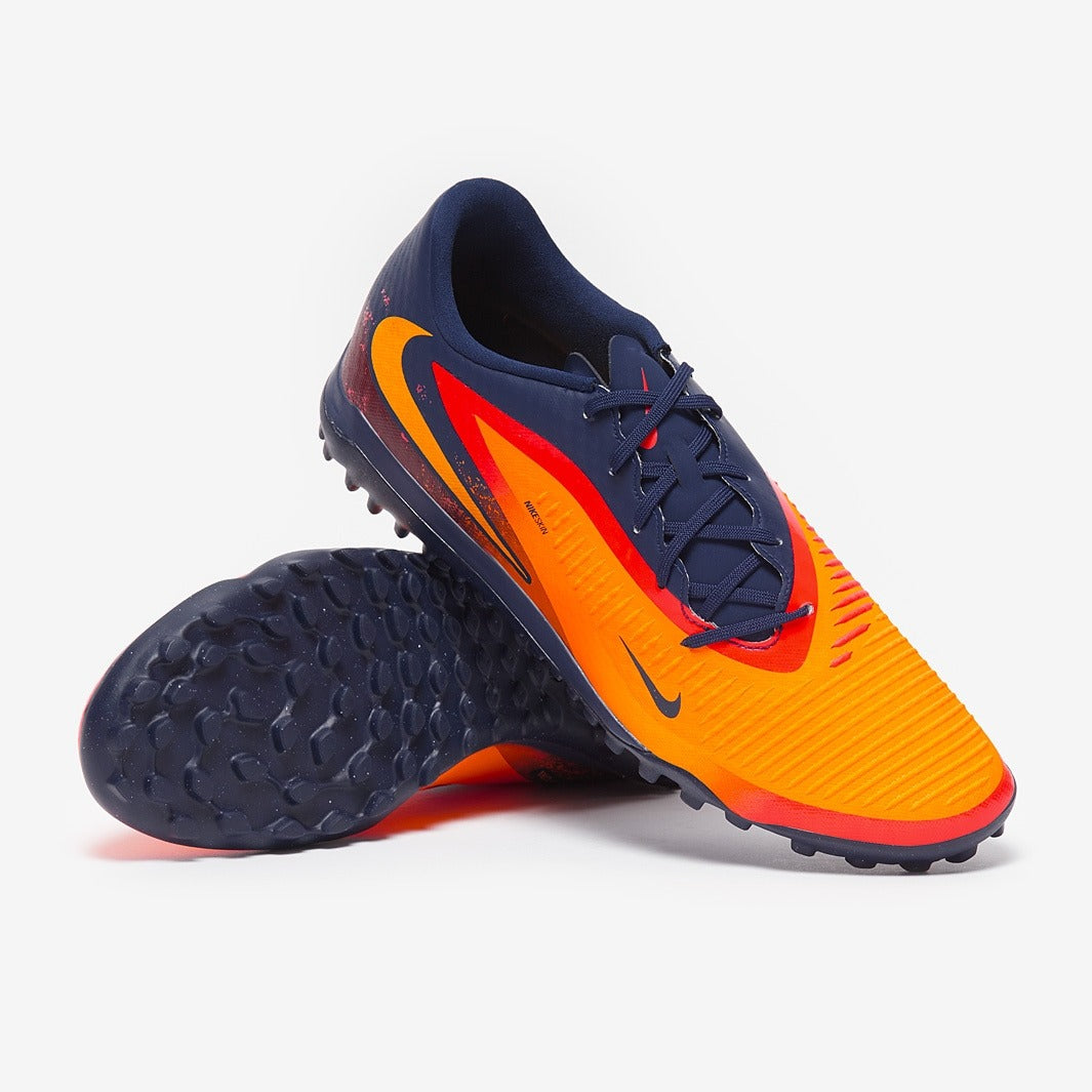 Scorch a path direct to goal wearing Nike Phantom 6 Academy Low x Haaland TF football shoes in Laser Orange/Lemon Venom/Blue Void. Chapter 3 of Haaland’s Player Edition series, this signature colourway ignites the fire within, displaying destructive power with blazing ember graphics.