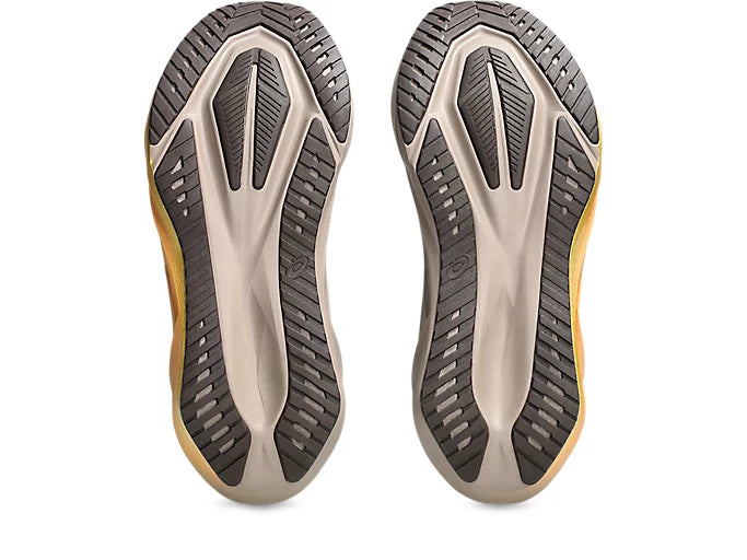 ASICS NOVABLAST 5 Luxe running shoe's midsole and outsole geometry that helps produce an energized ride. Its colorway features reflective details that are designed to improve your visibility in low-light settings.