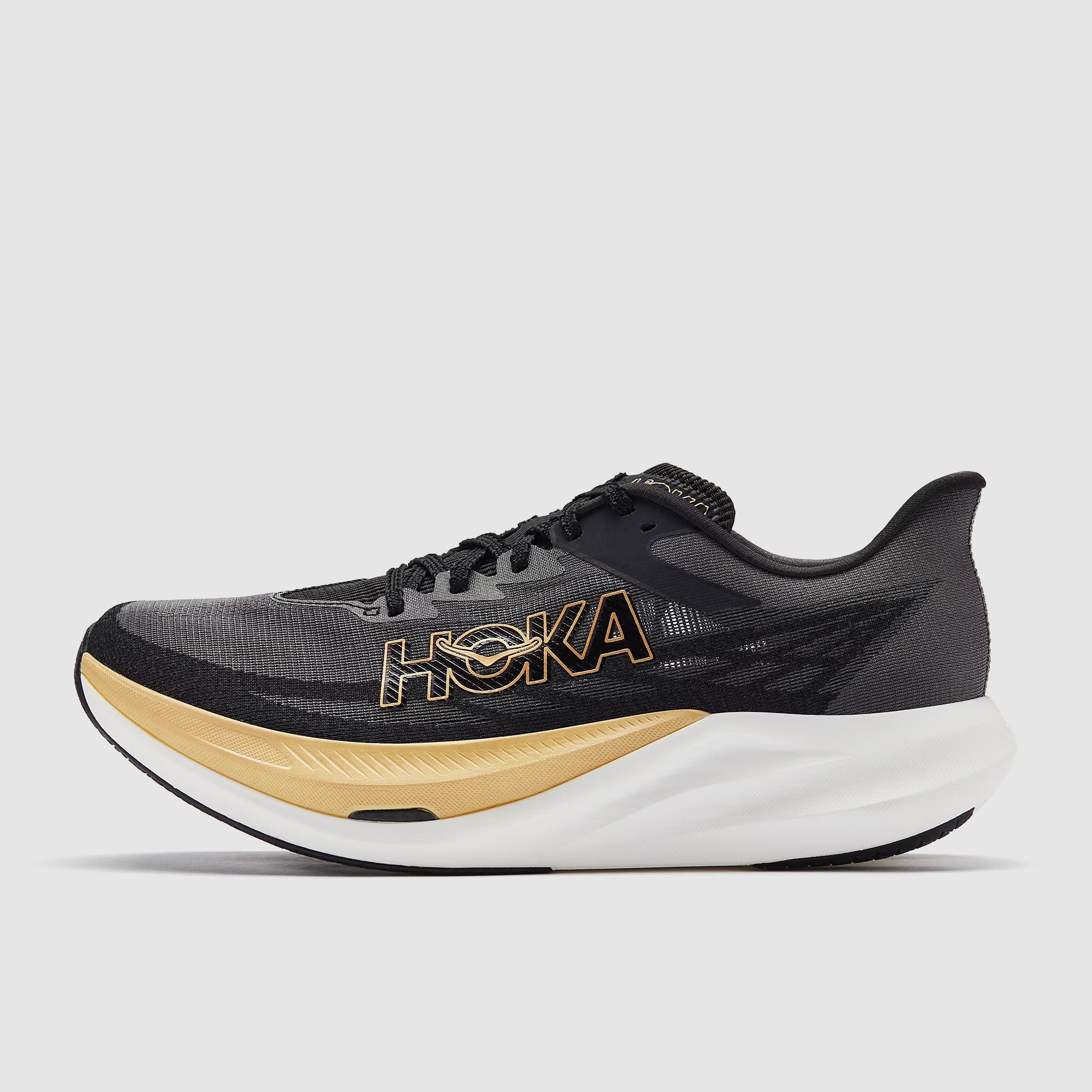 Carbon fibre propulsion for PB’s, that doesn’t skimp on support, the HOKA Rocket X 3 in Black/Gold is built to help you find new speed.