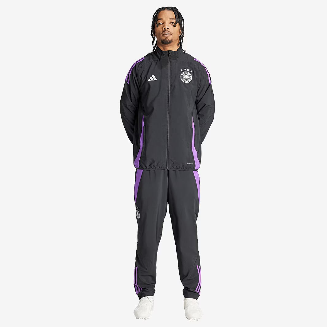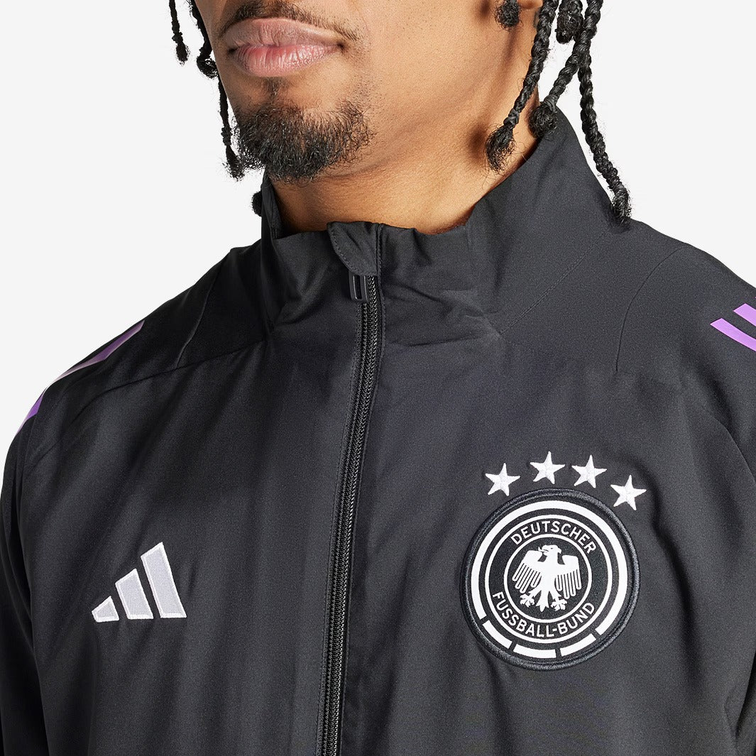 Back the Nationalelf as they host Euro 2024 and look to claim their fourth European Championship with the adidas Germany 2024 Pre-Match Jacket in Black, a high-performance overlayer that raises your game while you show your support.