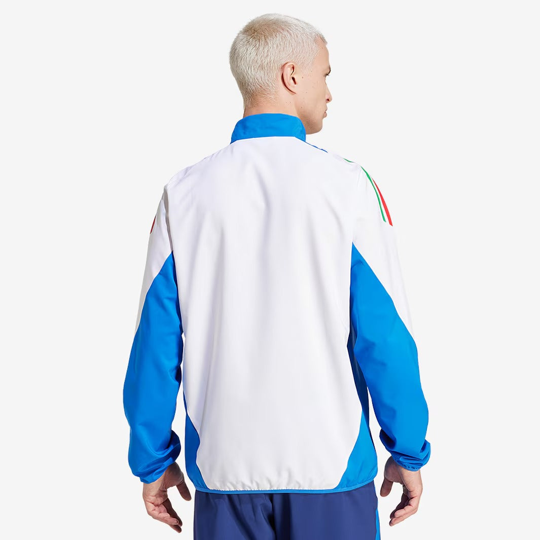 Back the reigning European champions as they travel to Germany and defend their title with the adidas Italy 2024 Pre-Match Jacket in White/Blue, a high-performance overlayer that raises your game while you show your support.