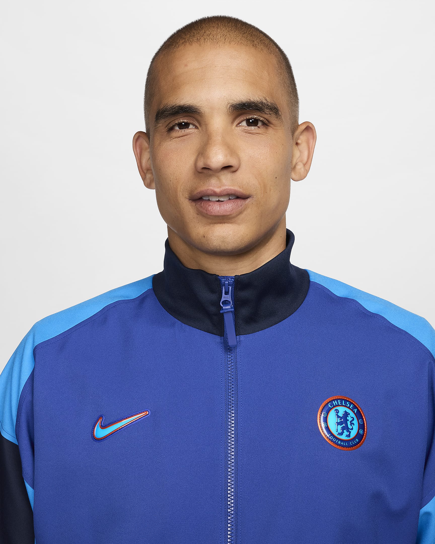 This Chelsea tracksuit jacket is a zip-up design you can wear when warming up for the game or cheering on your favourite team. With design details specifically tailored for football's rising stars, a loose fit works together with sweat-wicking technology to help keep you cool and composed while you fine-tune your skills.