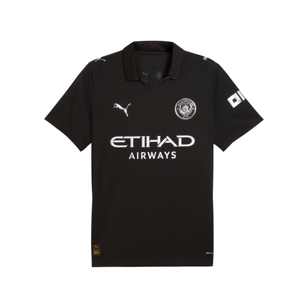 The earliest-known kit in Manchester City’s history dates back to 1884, when the football club was based in Gorton. The 25/26 Away Kit is a tribute to the early Cityzens, reimagined with a nod to the club's innovative spirit. The all-black design takes inspiration from that historic kit, combined with metallic details to celebrate the timeless essence of Manchester City Football Club.