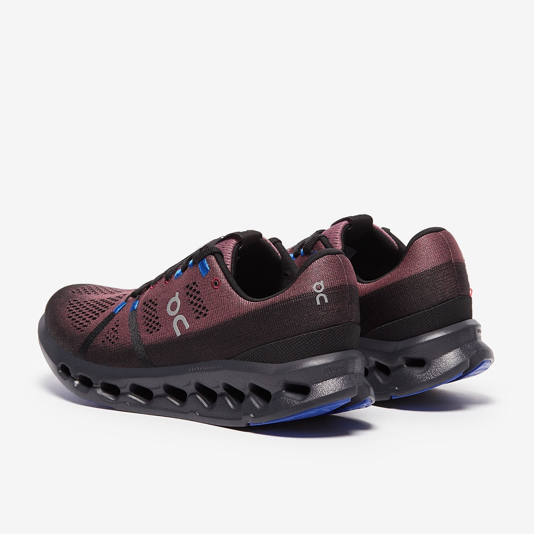 Introducing a new dimension in soft cushioning, the On Cloudsurfer in Black/Cobalt uses a brand-new midsole with computer optimised technology for a fresh feel that works for everything from daily training to fast runs and from 5k s to half marathons.