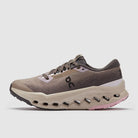 Built for light trail and training runs, the On Women's Cloudsurfer Trail 2 WP in Cinder/Desert updates an instant classic, with improved grip, fit, comfort, and a new waterproof resilient upper.