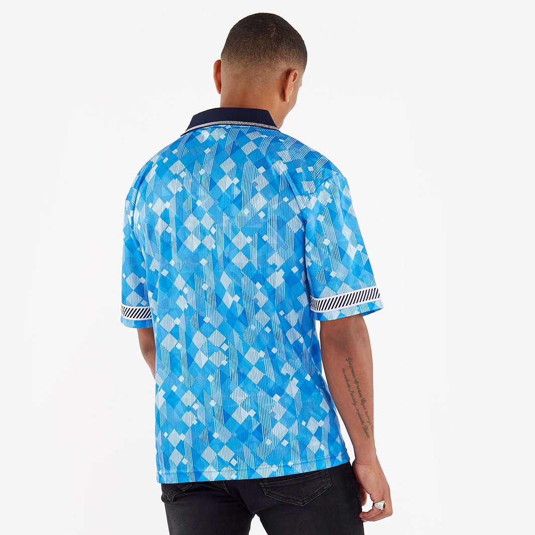 Forever etched in modern terrace culture thanks to its appearance in the video for their official 1990 World Cup anthem, the England 1990 Third Shirt is manufactured by Score Draw using the same materials as the original shirts.