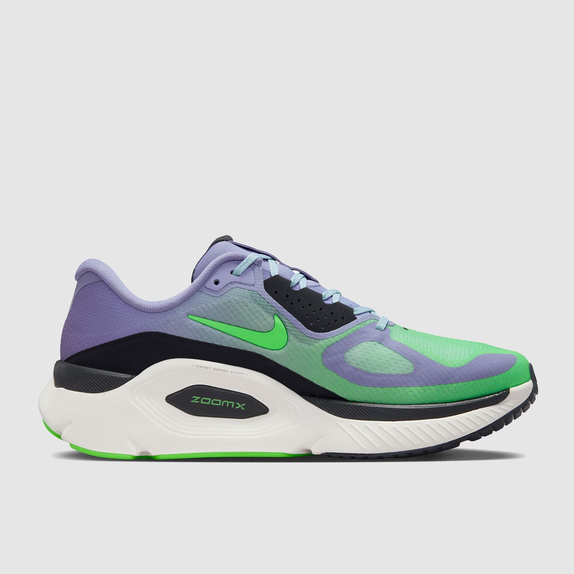 Featuring a lighter and faster combination of foams than the Structure 26, the Nike Structure Plus in Iron Purple/Voltage Green/Off Noir/Sail offers improved speed for those that want extra stability from their shoes.