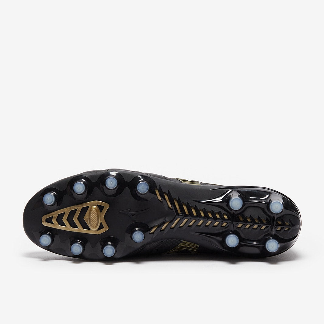 Play beyond fast wearing Mizuno Morelia Neo IV Beta Made In Japan FG football boots in Black/Gold.