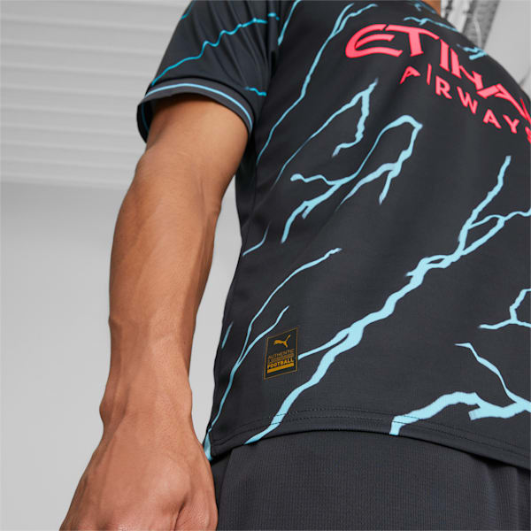Manchester is buzzing with energy. It’s vibrant, it’s exciting, it’s electric. At the heart of that is Manchester City, a team that’s changing the way soccer is played, coached, and understood. Their 2023/24 Third Kit is powered by the team’slightning-fast style of play and the atmosphere it creates between the fans, players, andstaff.