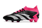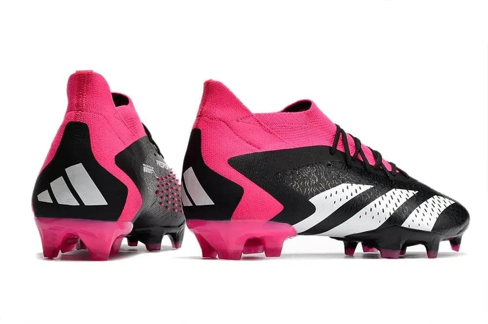 Control + accuracy = confidence. When the goal's in your sights, target perfection with adidas Predator Accuracy. The soft HybridTouch upper on these soccer cleats includes a mid-cut knit textile collar for lockdown and a molded sockliner for no-distraction play. High Definition Grip rubber elements add precision to strikes