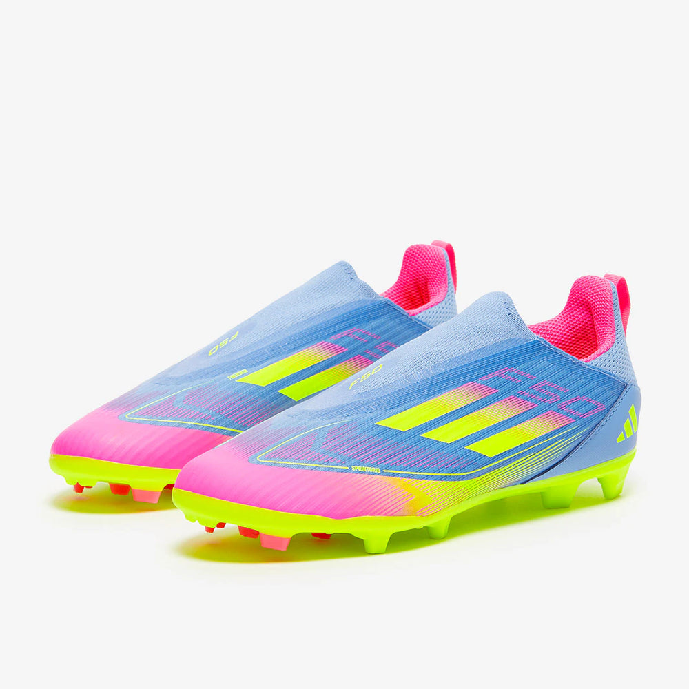 Redefine speed wearing adidas Kids F50 League Laceless FG football boots.