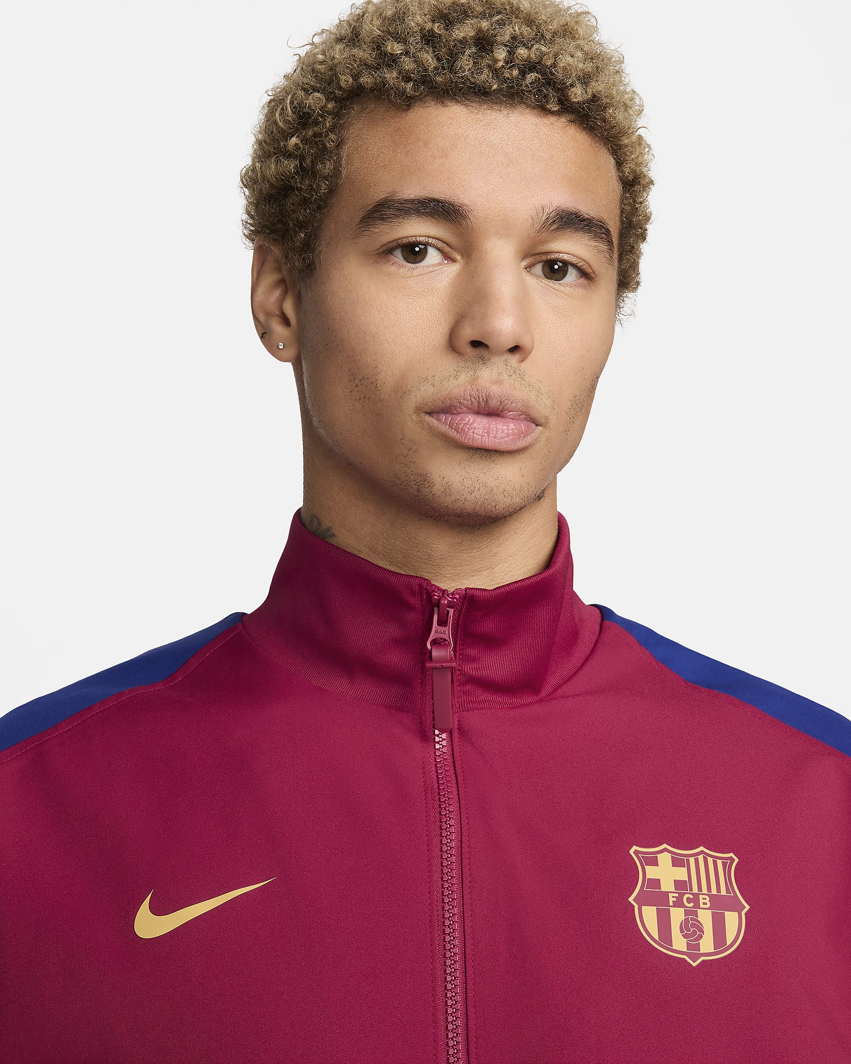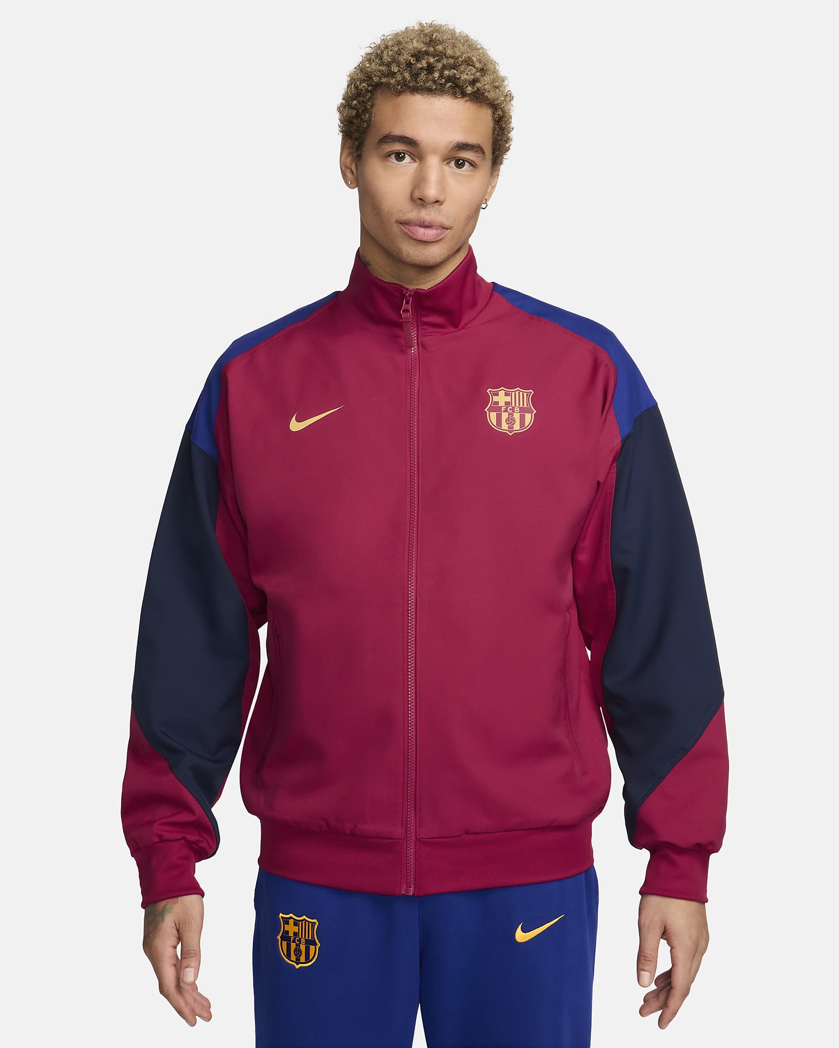 This F.C. Barcelona tracksuit jacket is a zip-up design you can wear when warming up for the game or cheering on your favourite team. With design details specifically tailored for football's rising stars, a loose fit works together with sweat-wicking technology to help keep you cool and composed while you fine-tune your skills.