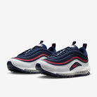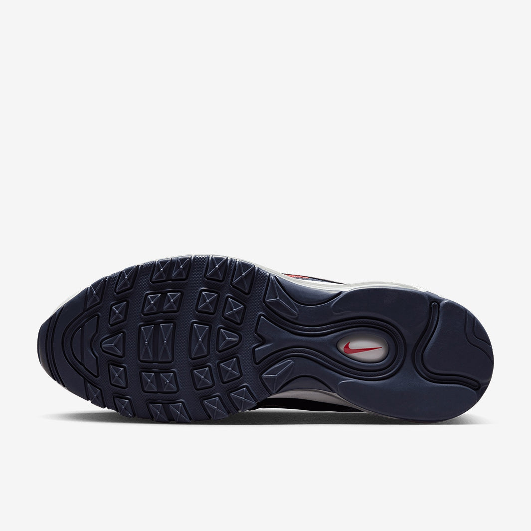 The Nike Sportswear Air Max 97 refreshes the 1990 original, adding some new looks to the classic low-top design that was originally inspired by falling raindrops and Bullet trains with a mix of mesh and synthetics offering breathable durability. Stitched leather overlays and padded collar shows off the heritage-filled past of the Air Max, with streamlined hidden laces that were the first of their kind. Full-length Max Air unit offers cushioning for every footfall, keeping you on your feet in all-day comfort.