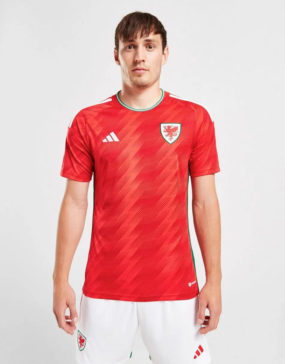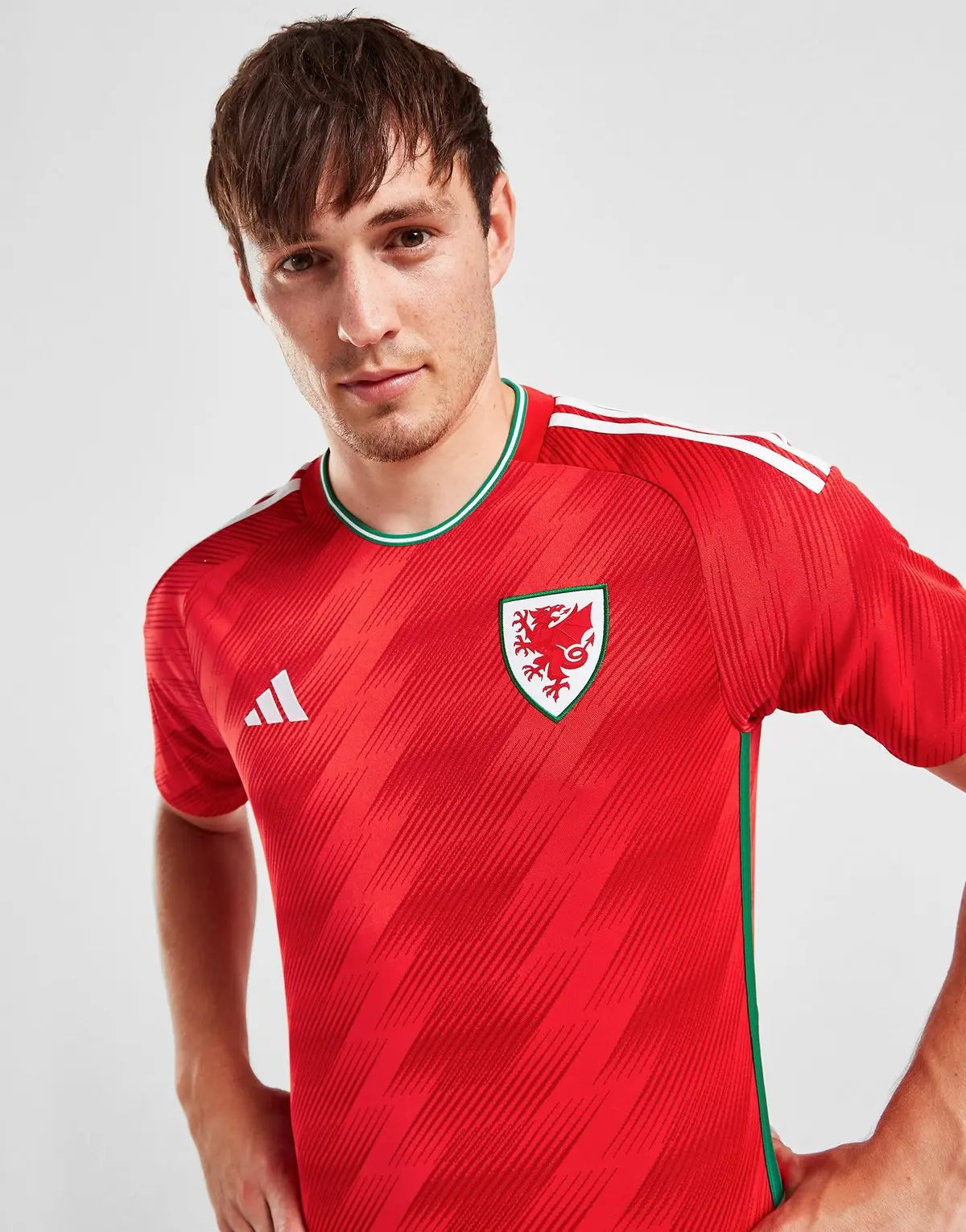 Get behind The Dragons in this men's Wales 2022 Home Shirt from adidas. Staying true to Wales DNA, this slim-fit shirt is made from lightweight, recycled poly fabric in the signature Red colourway. Inspired by the nation's dragon, this shirt comes with adidas' AEROREADY tech to wick away sweat, and features a ribbed crew neckline and short sleeves. It has a Daffodil sign off under the back collar, and is finished up with adidas the iconic Wales crest to the chest. Machine washable.